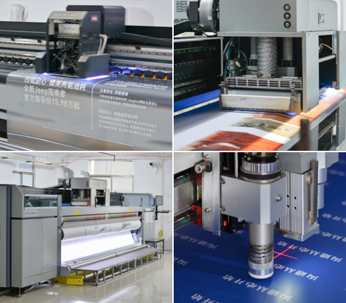 久天喷绘拥有喷绘行业一流的专业生产设备,拥有35台进口EPSON高清原装墨户内、户外写真机,进口HP Latex环保打印机,JHF 5米/3.2米宽幅UV卷材打印机,UV平板打印机,数控切割机,自动过膜机等一系列目前市场上最先进的机型
